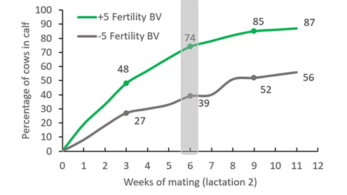 This resulted in more high Fertility BV heifers conceiving earlier in the mating period, with 9% greater 3-wk and 6-wk in-calf rates (Figure 3).